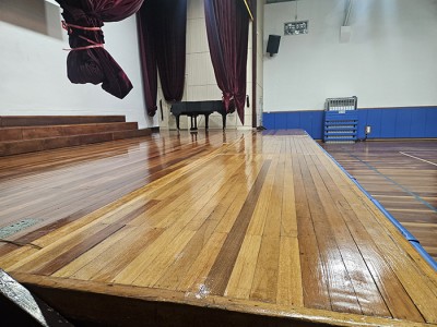 00학교 강당 박리 및 왁스코팅 청소입니다
